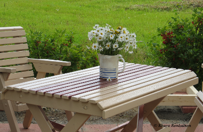 I love your garden furniture! I paint/stain mine in June. It does de-stress – kind of a meditation in itself. Even when I was in terrible pain, I found a way to paint the middle of a wood fence. My poor husband would have to paint the tops and the bottoms!
